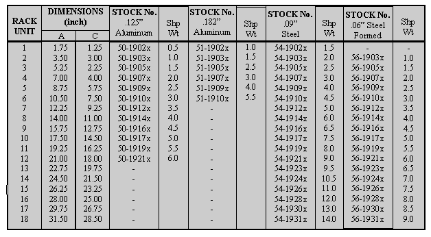 of EIA standards. The brushed aluminum with 0.125" and .18" thick (5052-H32