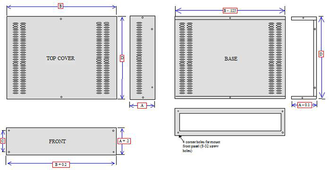 Two rows of vent holes are punched on side panels. Please choose divider plate, handles, or thicker front panel from table below. Add suffix-x for your choice of color or finish: -B black anodize front & black paint |